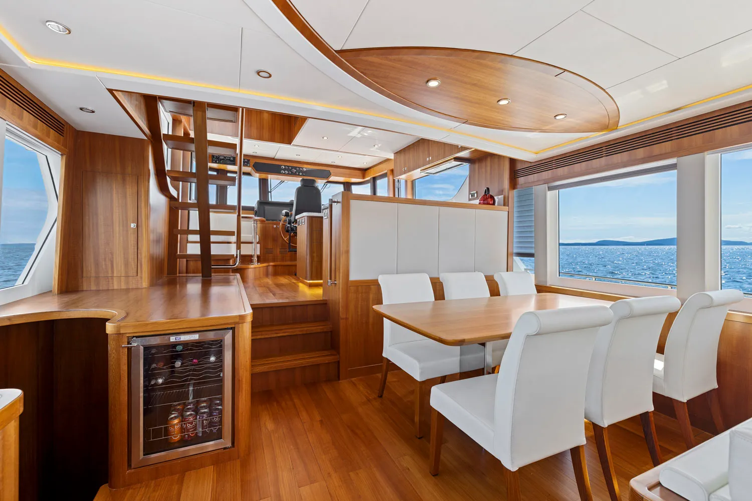 She is sure to appeal to existing owners and boat enthusiasts alike and takes the simple and proven concept of the fuel-efficient and seaworthy luxury trawler yacht to a new level of luxury that is intended to compete directly with the finest European yards but with all of the advantages of GRP. This ocean-going yacht offers an extraordinary blend of style and function that redefines the luxury ocean trawler category.