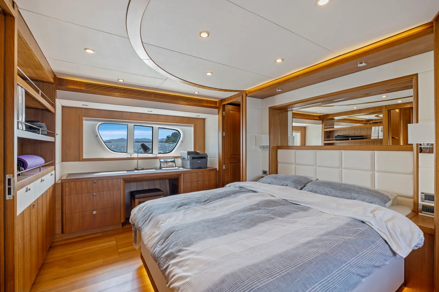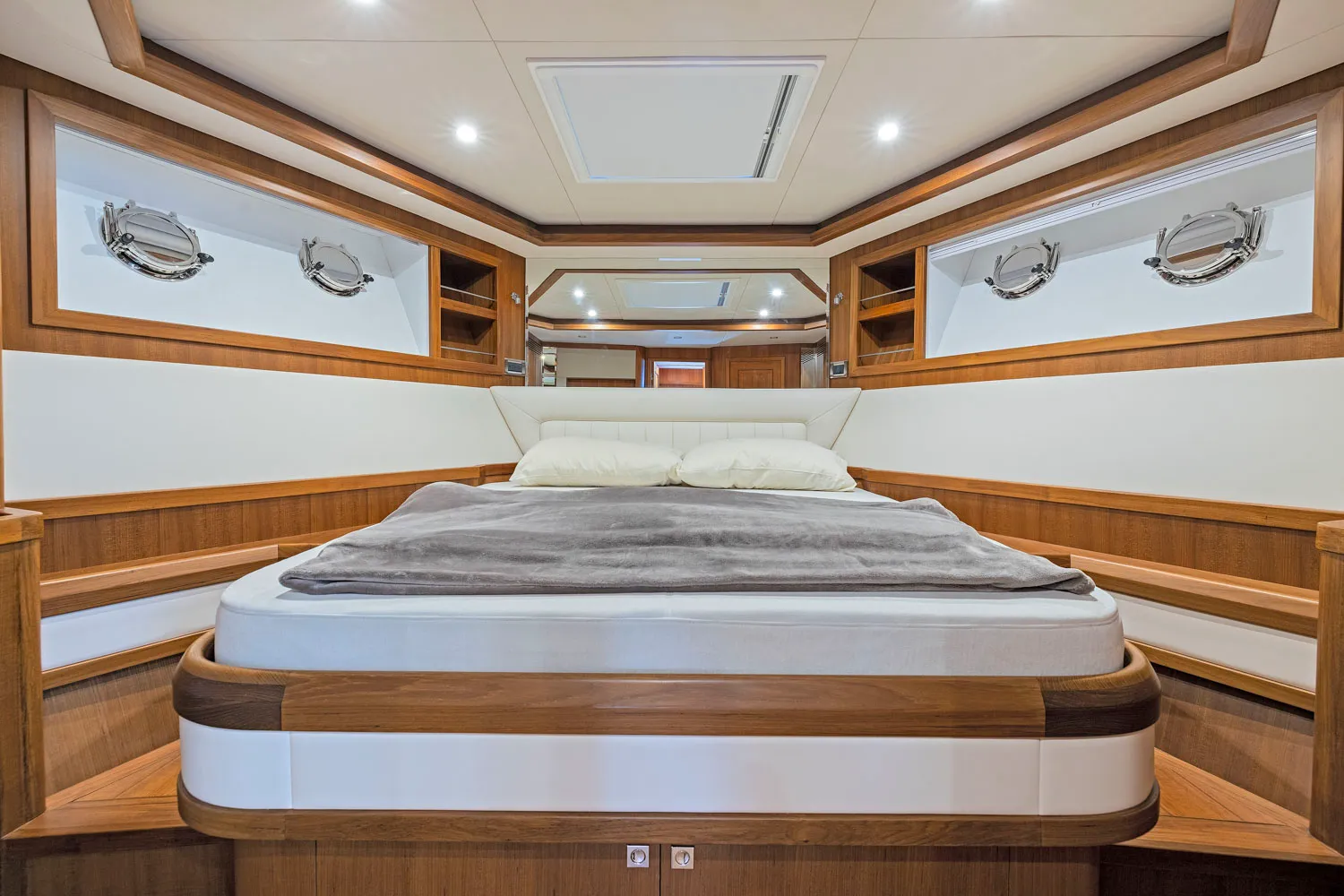 This new yacht has a brand new styling profile and a layout that contains three luxury staterooms and three heads. Although the yacht can easily be operated by the owner, it has a comfortable crew quarter aft with additional fourth head for a captain or steward, which can also double as a fourth cabin. Twin or single Cummins or John Deere engines are available for the propulsion system. The interior design will be contemporary, similar to the Selene 92 and 72. There are three versions to choose from, “Full Wide Body”, “Port Side Wide Body” and “Standard Two Side Decks”.